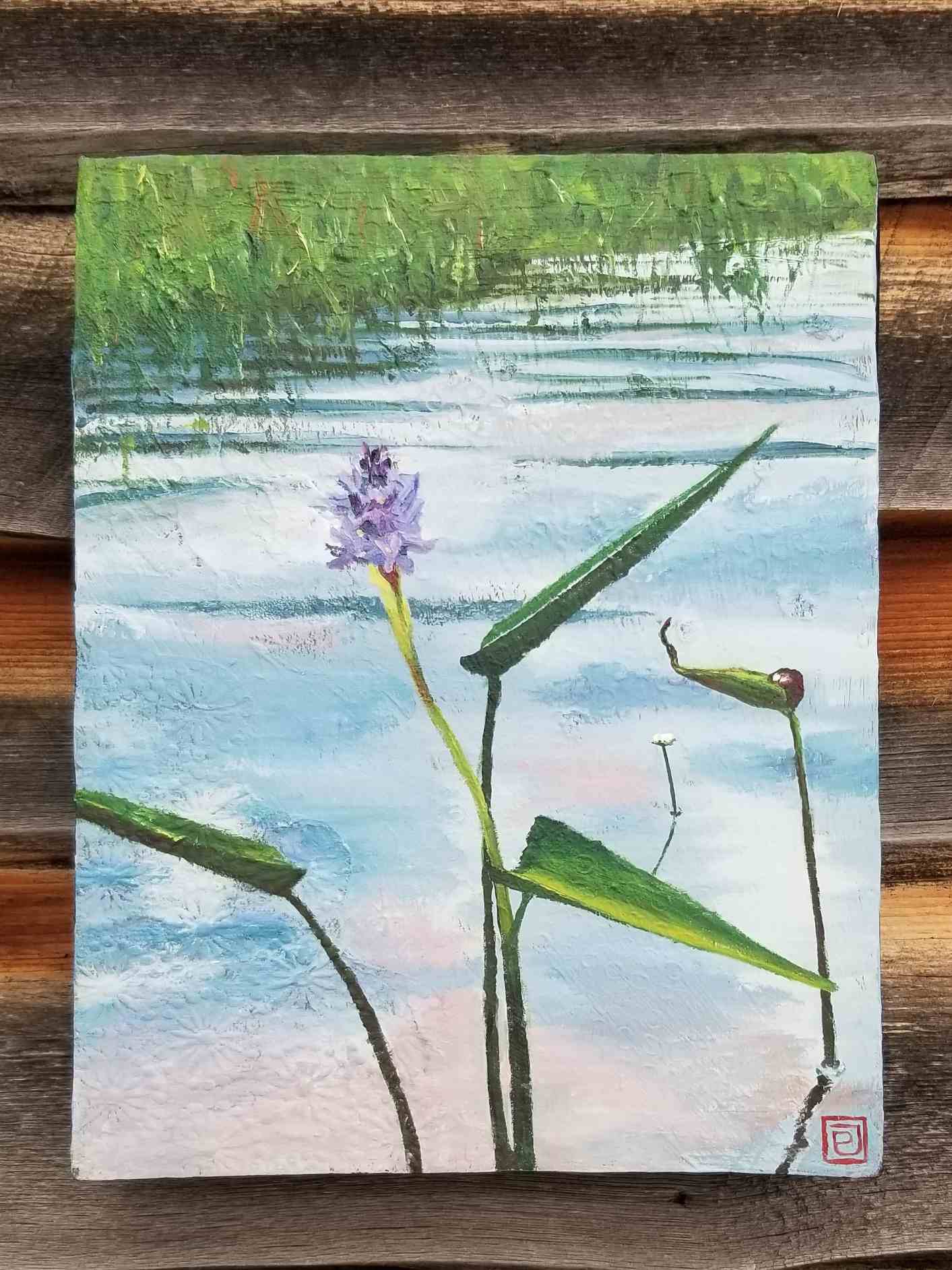 A beautiful water plant with an uninspiring name. You will find Pickerelweed in lake and river edges throughout Northern Ontario. Delightful purple flowers with distinctive arrow point leaves. This one was in Bell Lake, Killarney.