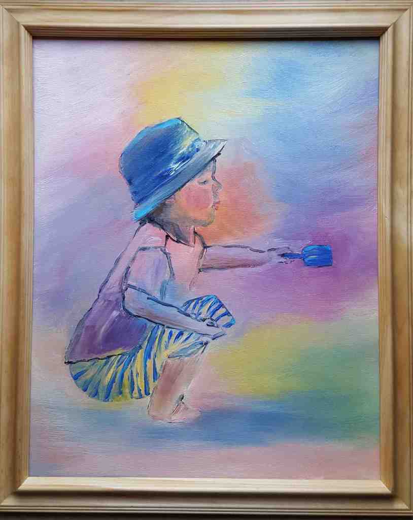 Materials: Oil on paper covered canvas 10″ x 10″